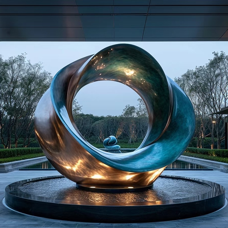 Inspired by the concept of a time-space ring and the Eastern philosophy of "heaven round, earth square", this sculpture is forged from bronze. Its exterior develops a unique patina through natural oxidation, while the interior features polished brass with an embedded LED warm light system. The hollow sphere design creates a visual contrast between the inner and outer materials, retaining the Eastern aesthetic of "harmonious coexistence" while embodying avant-garde artistry. The hollow sphere symbolizes inclusiveness and infinite time-space, and the contrast between patina and polished brass conveys the idea of "symbiosis between tradition and modernity", making it an iconic installation for high-end office buildings and cultural venue entrances to elevate spatial style and showcase cultural heritage.