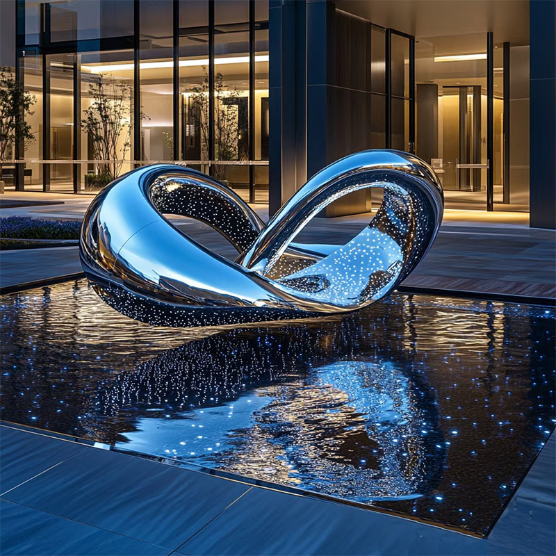 Centered on minimalist aesthetics and a tech-forward vibe, it features a twisted infinity symbol form. The mirror reflections and starlight system enrich visual layers, complementing modern architecture and water features perfectly. Combining visual impact with cultural symbolism, it serves as both an artistic symbol of eternal symbiosis and an eye-catching landmark that elevates nighttime spatial recognition.